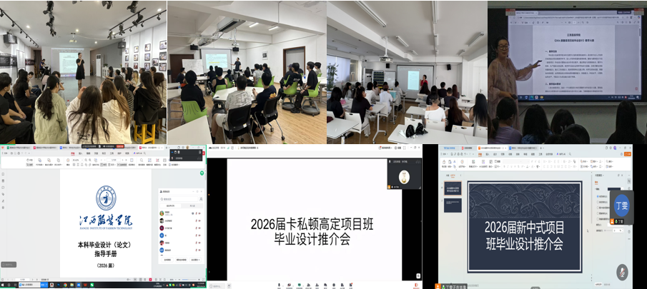 (服装设计学院讯通讯员:王正道)9月23日12时40分,服装设计学院为全面落实服装设计学院2026届本科毕业设计工作部署,9月24日至26日,服装与服饰设计专业、产品设计专业各项目班及服装与服饰设计专升本方向,相继以线上线下结合形式召开毕业设计导师推介会,既统一明确核心要求,又凸显专业特色亮点,为毕业生搭建起“明标准、找方向、解困惑”的精准服务桥梁。