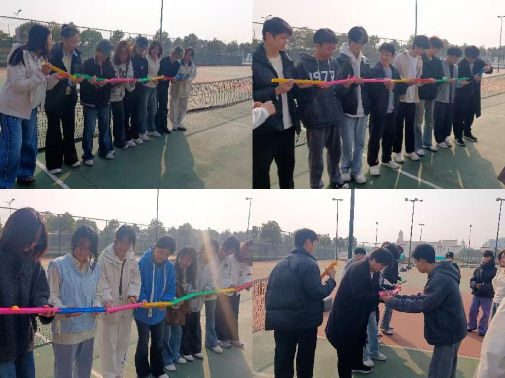 (服装设计学院通讯员:钟怡婕)为贯彻落实教育部关于全面加强学生心理健康教育工作的有关精神,推动心理育人融入日常、落到实处,12月2日下午,服装设计学院在学校网球场组织开展“一室同心,携手同行”心理素质拓展活动。本次活动以宿舍为单位开展,通过一系列寓教于乐、富有心理成长意义的团队任务,着力营造积极向上、互助友爱的校园氛围,助力学生身心全面健康发展。