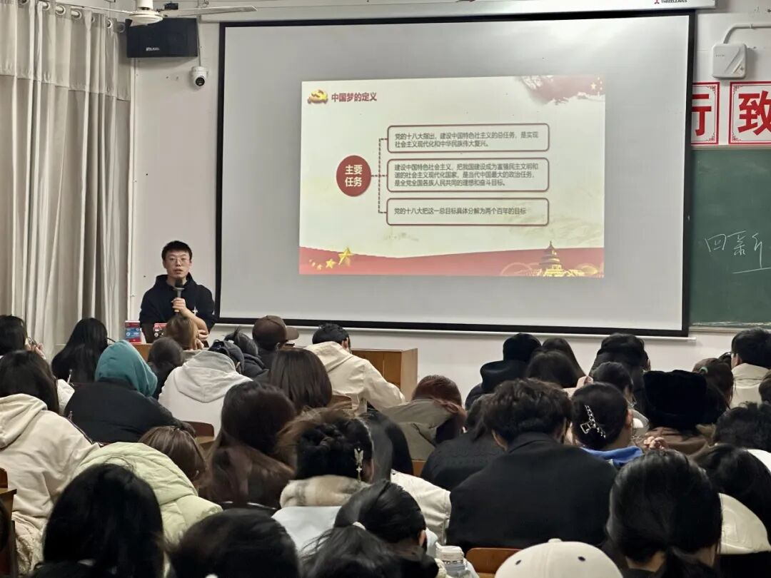 紧接着,何靝福将重点转向“聚力共圆梦想”,强调实现中国梦需要全社会共同参与、协同发力。他表示,梦想的实现离不开每一个人的努力,无论身处何种岗位、从事何种职业,都能为中国梦的推进贡献力量:在科技前沿,科研工作者攻坚克难,为梦想注入创新动能;在乡村一线,基层干部与村民携手发展特色产业,推进乡村振兴,为梦想夯实民生根基;在文化舞台,文艺工作者创作出反映时代精神的优秀作品,传承文化根脉,是为梦想涵养精神力量;在国际平台,外交人员、援外工作者传递中国声音、贡献中国方案,是为梦想拓展国际空间。何靝福鼓励在场同学们:“要将个人理想与国家发展需求紧密结合,让个人奋斗与民族复兴的节奏同频共振,在各自岗位上创造价值、贡献力量。”