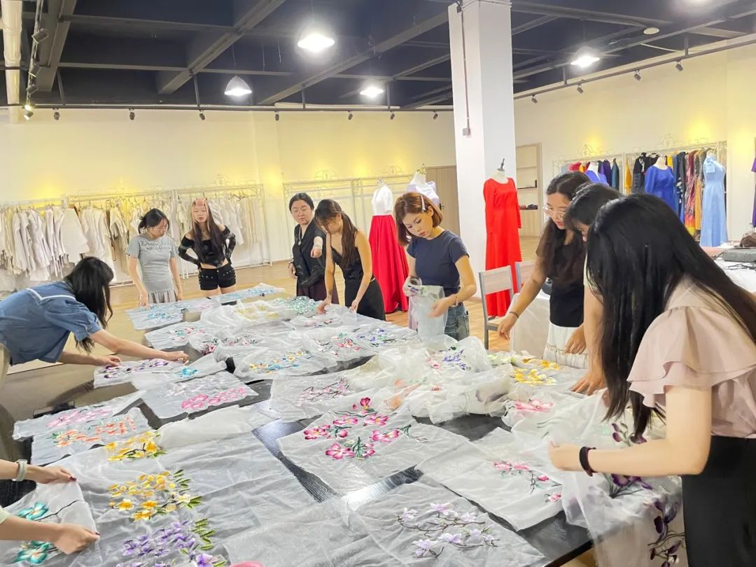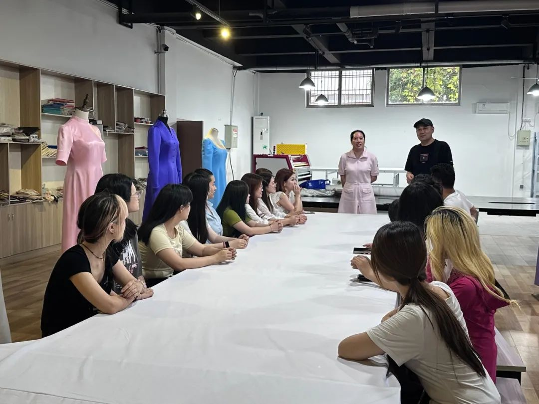 (服装设计学院通讯员:高亮财)为贯彻落实党中央、国务院关于高校毕业生就业工作的决策部署与省委、省政府工作要求,进一步深化校企合作,推动实习就业联动,有效提高实习就业转化率,提升人才培养与企业需求的契合度,2025年6月28日-7月3日,肇达张婚纱礼服产业学院负责人殷磊老师带队护送11名22级服装与服饰设计专业学生(2026届)前往浙江余音服饰有限公司实习,同时看望慰问企业就业的2025届毕业生,传递母校关怀。