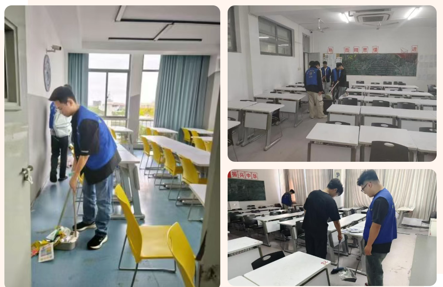 教室清洁环节,同学们更是将“设计人”的细致与严谨发挥到极致。遵循“无死角、全覆盖”的清洁标准,大家分工协作:擦拭组仔细清洁门窗玻璃、黑板凹槽、课桌椅边角,连粉笔灰堆积的缝隙都不放过;整理组有序归置讲台教具、清理抽屉杂物,让教学空间更显规整;清扫组则采用“先扫后拖”的方式,确保地面无灰尘、无污渍。
