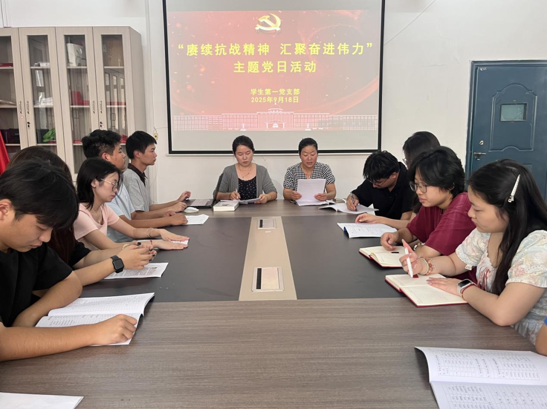 (服装设计学院通讯员:朱子怡)为铭记历史,弘扬伟大抗战精神,2025年9月18日下午,服装设计学院学生第一党支部、学生第二党支部分别于清河9栋101、104活动室开展了“赓续抗战精神 汇聚奋进伟力”主题党日活动。党支部委员及全体党员参加了此次活动,活动由党支部书记主持。
