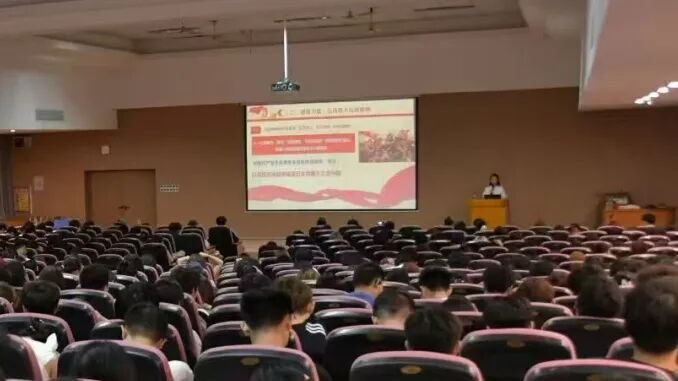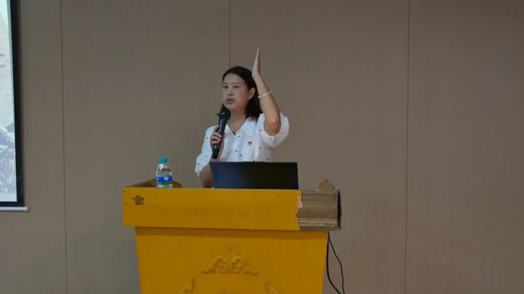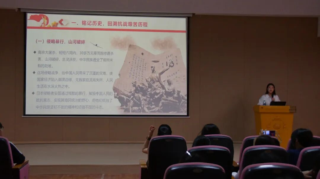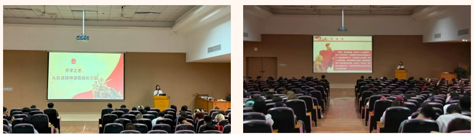 随后,蓝岚书记从“铭记历史,回溯抗战艰苦历程”“感悟力量,弘扬伟大抗战精神”“开学之思,从抗战精神中汲取成长力量”三个方面进行了深入讲解。