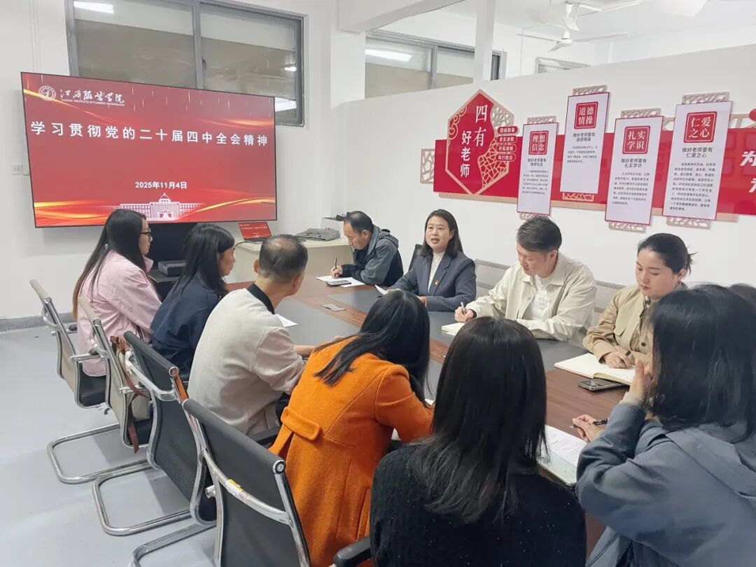 会上,学院党委书记蓝岚传达学习《中国共产党第二十届中央委员会第四次全体会议公报》《中共中央关于制定国民经济和社会发展第十五个五年规划的建议》。她强调,党的二十届四中全会是在向第二个百年奋斗目标进军的新征程上举行的一次十分重要的会议,对于进一步凝聚起全党全国各族人民磅礴力量,为以中国式现代化全面推进强国建设、民族复兴伟业而团结奋斗,具有重大意义。