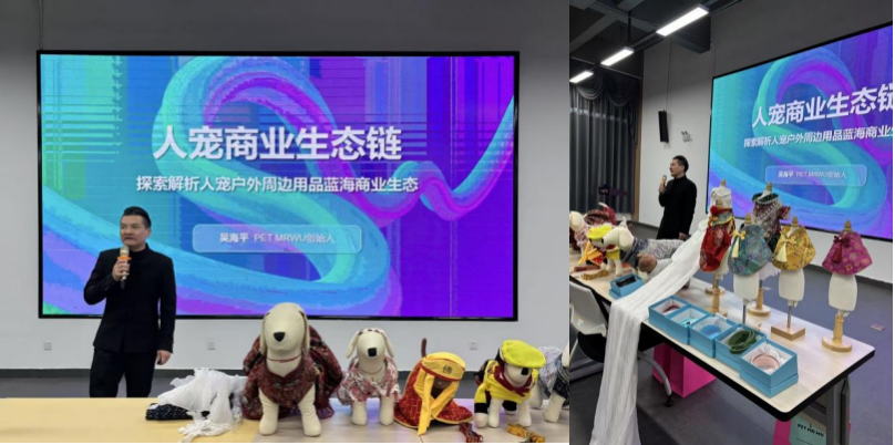 讲座伊始,吴海平老师从当前宠物经济的发展态势切入,深入剖析了宠物行业的前景趋势。他指出,随着人们生活水平的提高和情感需求的多元化,宠物已经从单纯的陪伴角色演变为家庭成员,围绕宠物的衣食住行正催生出一个涵盖食品、用品、医疗、美容、时尚等领域的庞大产业链。“宠物时尚不再只是保暖和实用,更承载着主人对文化的认同和对美的追求。”吴老师以今年广受关注的“宠物春晚”为例,通过现场视频回顾,带领同学们重温了这场别开生面的文化盛宴。视频中,身着各色服饰的宠物在舞台上自信“走秀”,将现代宠物文化与中华传统美学巧妙结合,赢得现场阵阵惊叹。