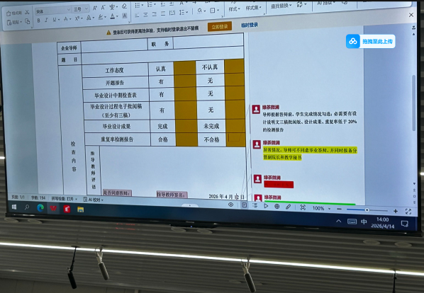 会上,刘琼副院长强调了毕业设计答辩资格审查工作的重要意义。她指出,毕业设计是检验学生四年学习成果和综合能力的核心环节,答辩资格审查是确保答辩质量、维护学术严肃性的第一道关口。全体指导教师务必提高责任意识,严格对照标准,认真履行职责,切实当好毕业设计的“守门人”。