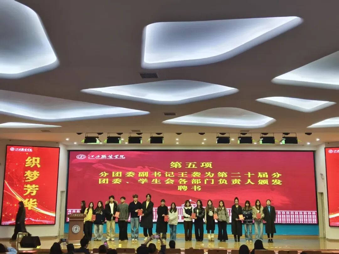 分团委副书记王袭为第二十届分团委、学生会部门负责人颁发聘书。