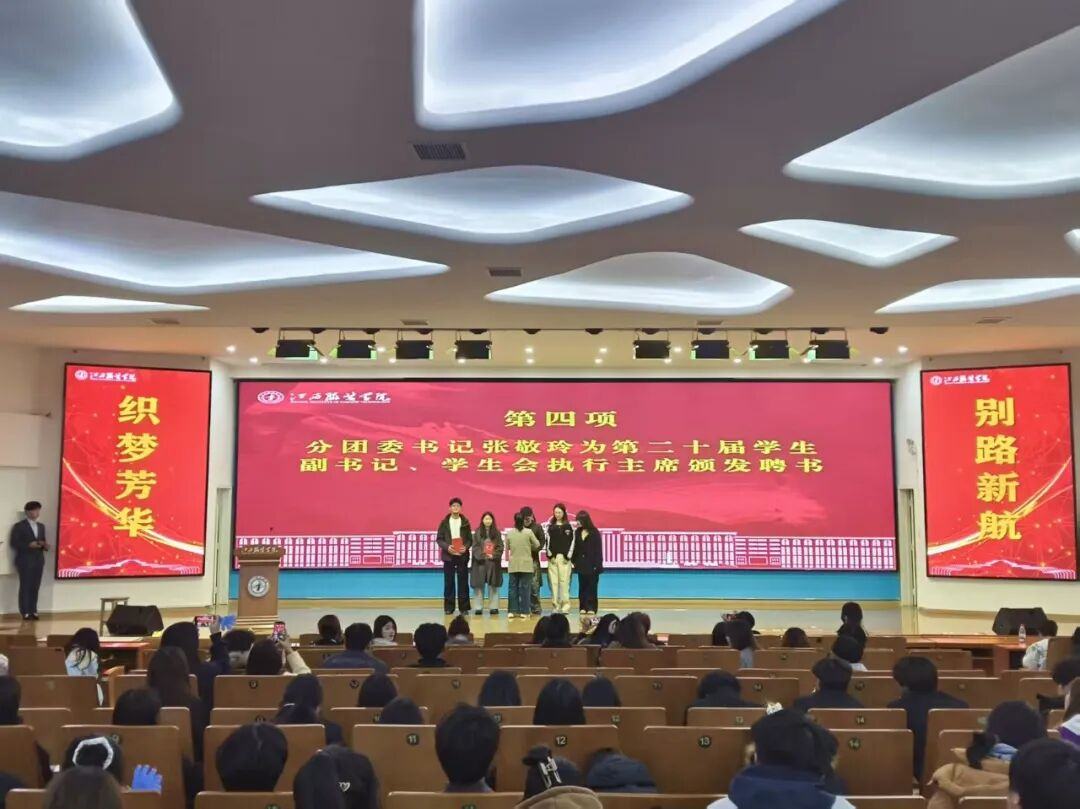分团委书记张敬玲为第二十届分团委学生副书记、学生会执行主席颁发聘书。