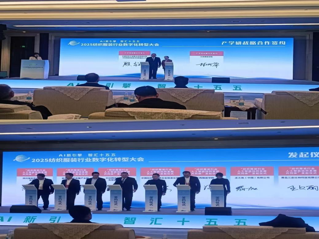 紧接着,大会举行了AI赋能战略合作签约以及产学研战略合作签约,“纺织服装行业人工智能协同发展共同体”正式成立。这一系列签约与发起仪式标志着行业在数字化转型道路上迈出了坚实步伐,通过整合各方资源,构建起产学研用深度融合的合作体系。服装设计学院学生代表们在现场见证了这一重要时刻,深刻感受到行业协同创新的强大动力。他们深刻意识到,未来的职业生涯将置身于一个开放、多元、协同的生态环境中,需要不断提升自身综合素质,积极融入行业合作潮流,为推动纺织服装行业的数字化转型贡献自己的力量。