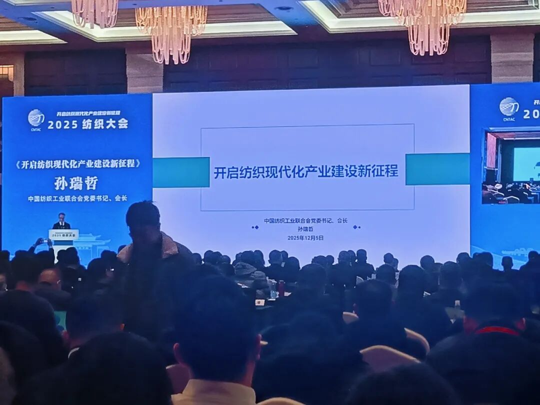 随后,中国纺织工业联合会党委书记、会长孙瑞哲发表了题为《人工智能驱动纺织服装行业新质生产力》的主旨报告。孙会长凭借其深厚的行业洞察力和前瞻性的战略眼光,详细解读了人工智能技术如何深度融入纺织服装行业的生产、设计、销售等各个环节,催生出全新的生产力形态。他指出,人工智能不仅是提升生产效率的工具,更是推动行业创新、满足个性化消费需求的关键力量。这一报告为与会者提供了对行业未来发展的清晰认知,也为服装设计学院学生代表们带来了全新的思维启迪,让他们深刻意识到所学专业与前沿科技紧密相连,未来职业发展充满无限可能。