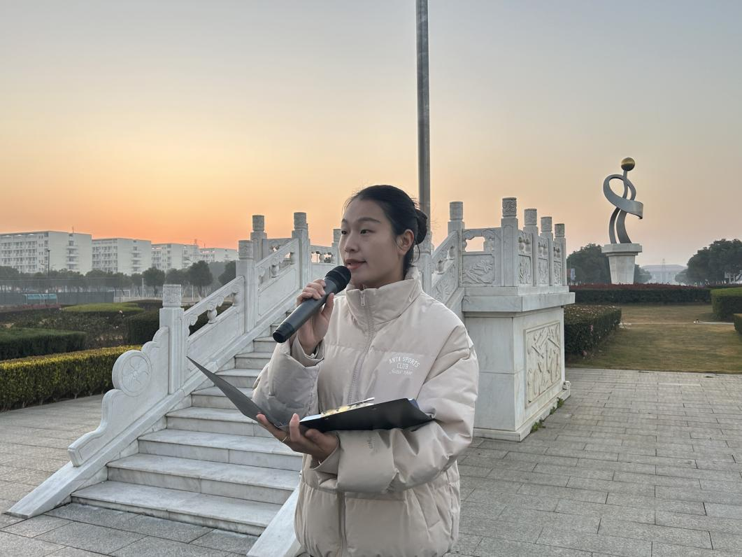 (服装设计学院通讯员:钟怡婕)为深入学习贯彻党的二十届四中全会精神,激励全体师生在新时代背景下争做德智体美劳全面发展的时代新人,服装设计学院于12月29日清晨,在主教学楼前举行“诚信应考树新风 严守纪律铸品格”主题升旗仪式。学院党委副书记马忠秋、全体辅导员以及在校全体学生参加本次升旗仪式。