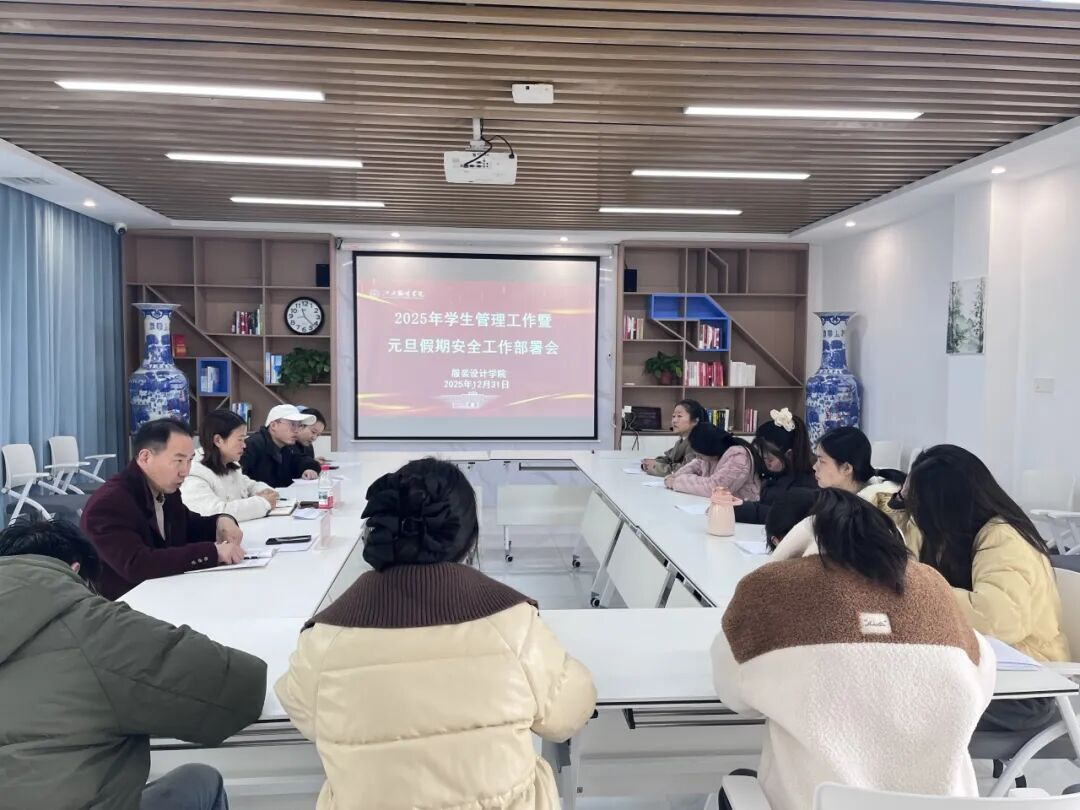 (服装设计学院通讯员:钟怡婕)2025年12月31日,服装设计学院在“一站式”社区会议室召开2025年学生管理工作暨元旦假期安全工作部署会。学院党委书记蓝岚、党委副书记马忠秋、学工办主任张敬玲及全体辅导员参会。