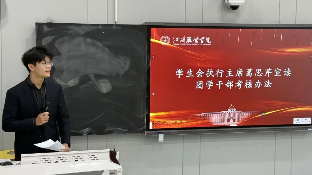 制度建设是团学工作的重要保障。学生会执行主席葛思芹现场宣读团学干部考核办法,从工作态度、履职能力、活动参与、纪律表现等方面明确考核标准与要求,进一步规范团学干部管理,激发团学骨干的工作积极性与主动性,推动团学工作规范化、制度化开展。