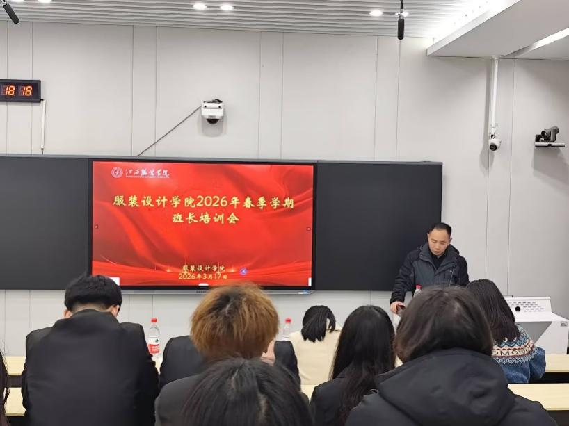(服装设计学院通讯员:钟怡婕)为培育新时代高素质学生干部队伍,引导班长群体提升履职能力,服装设计学院于2026年3月17日晚6点30分在主教楼129召开2026年春季学期班长培训大会,本次培训由学院党委副书记马忠秋书记主讲,24、25年级全体班长和副班长参加。旨在进一步加强班长队伍建设,明确职责使命,提升服务能力,为学校高质量发展与申硕攻坚工作凝聚青春力量。