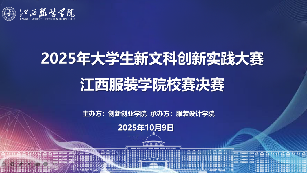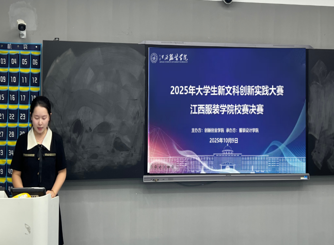 (服装设计学院通讯员:钟怡婕)2025年10月9日下午6时,我校2025年大学生新文科创新实践大赛江西服装学院校赛决赛于主教楼229教室顺利举行。本次赛事聚焦新文科创新实践,比赛由创新创业学院主办,服装设计学院承办。大赛以“融创赋能•实践致新”为主题,旨在推动学校文科人才培养实质性“脱虚向实”,自8月份启动以来,得到了全校师生的广泛关注与积极参与。经过材料初筛、校外网评后,共计5个项目晋级线下决赛。