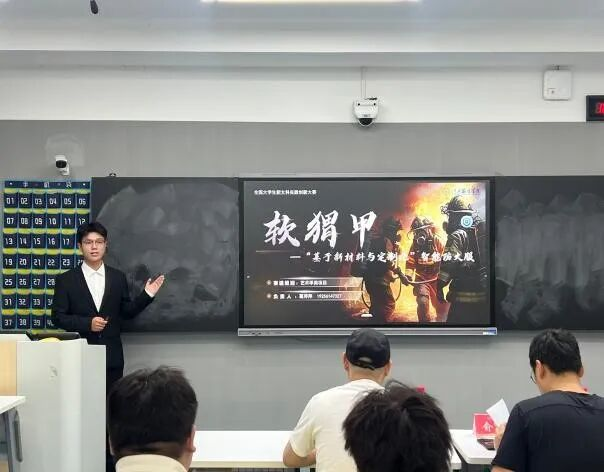随后,5支决赛项目团队依次登场答辩。各团队围绕项目背景、创新点、实践成果及未来规划展开精彩阐述,既有对传统文化与现代设计融合的探索,也有对数字技术赋能文科领域的实践,充分展现了江服学子在新文科创新实践中的思考与担当。