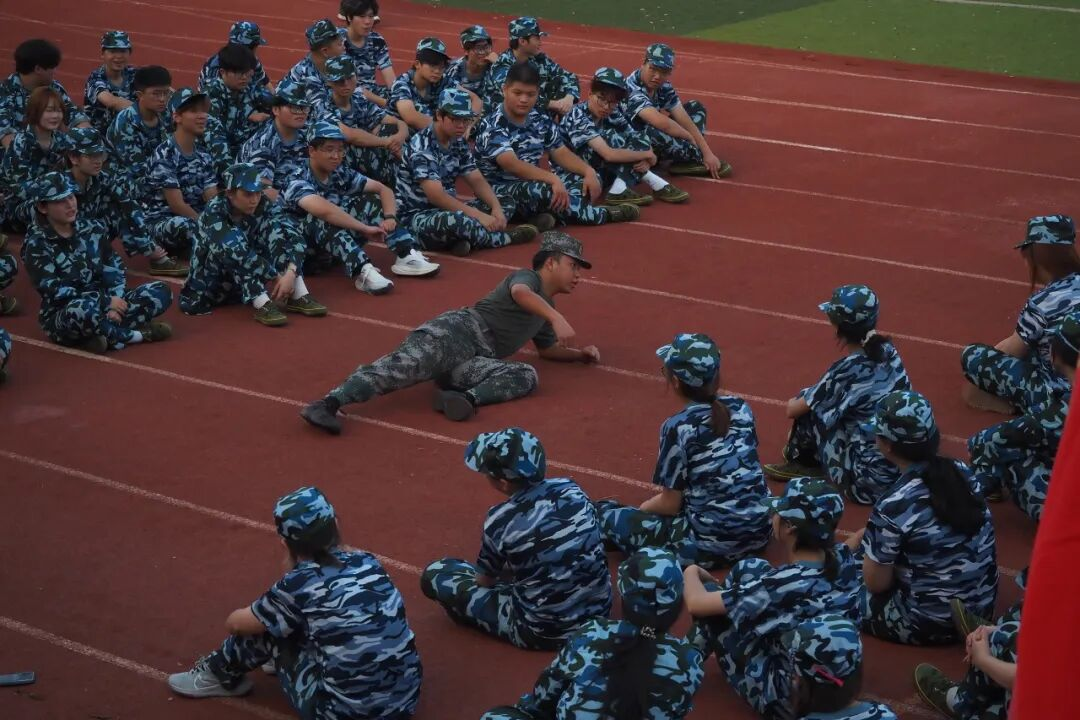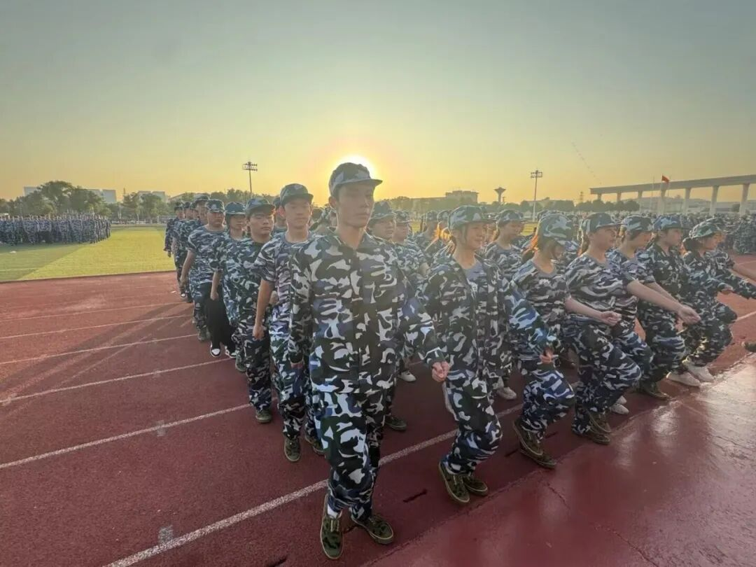 午后,烈日当空,训练场上热浪滚滚。同学们练习正步走,步伐整齐划一,口号声震天响。虽然动作还不熟练,但大家都在努力跟上节奏。休息时,大家围坐在一起,分享着彼此的训练心得,互相鼓励,互相支持。
