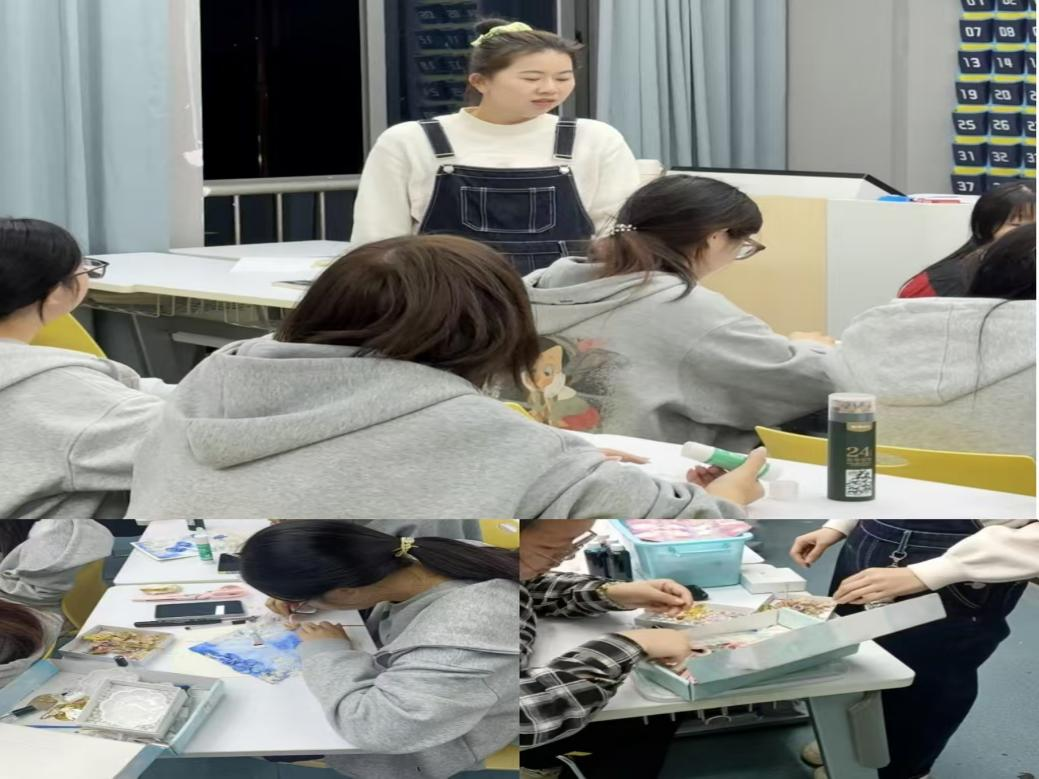 活动伊始,社团指导老师王袭聚焦非遗技艺“螺钿”展开专题讲解。老师从螺钿的历史渊源、工艺特点、材料选择等方面娓娓道来,通过实物展示与案例分析,详细拆解螺钿镶嵌的核心技法,让同学们直观了解这一古老工艺的精妙之处。同时,老师强调非遗文化的当代价值,鼓励同学们将螺钿、盘扣等非遗元素融入服装设计、产品设计等专业创作中,用现代设计语言赋予传统文化新的生命力。