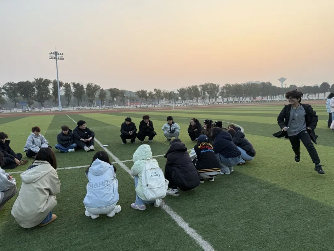 短暂热身后,学员们围坐在一起,一起开始趣味游戏。学员们的眼睛亮晶晶地追随着那鲜艳的“手绢”;丢手绢的学员轻踮脚步,屏息绕圈,猛然一放手绢,风一样起跑,被“抓”的同学笑着加入追赶行列,圆圈爆出节拍整齐的掌声和银铃般的笑声。
