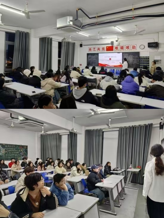 (服装设计学院通讯员:钟怡婕)为深入学习贯彻党的二十届四中全会精神,凝聚青年力量助力中国式现代化建设,引领广大青年将个人理想融入国家发展大局,2025年12月21日,服装设计学院青年宣讲团走进班级开展党的二十届四中全会精神微宣讲。宣讲团成员深入浅出地解读全会擘画的“十五五”宏伟蓝图,围绕科技自立自强、现代化产业体系、高质量发展等核心部署,结合红色文化传承与家乡发展新貌进行生动阐释,一个个映照初心的革命故事、一项项振奋人心的发展成就、一幅幅清晰可期的未来图景,引发青年学子强烈共鸣,更激励大家以青春之姿勇担使命、奋楫争先。宣讲员们鲜活生动的讲述赢得阵阵掌声,让全会精神真正入脑入心。