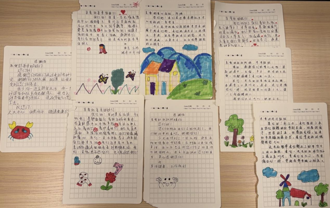 更令人动容的是,孩子们用稚嫩的笔触写下了一封封感谢信,字里行间满是纯粹的喜悦与真挚的谢意。“谢谢你们的爱心礼物!新围巾、新衣服、书本、实用的文具,每一份都温暖了我们的心房,我们一定会好好爱惜这些礼物,将来把这份爱心传递下去,做一个有温暖的人,祝你们天天开心、快快乐乐。”