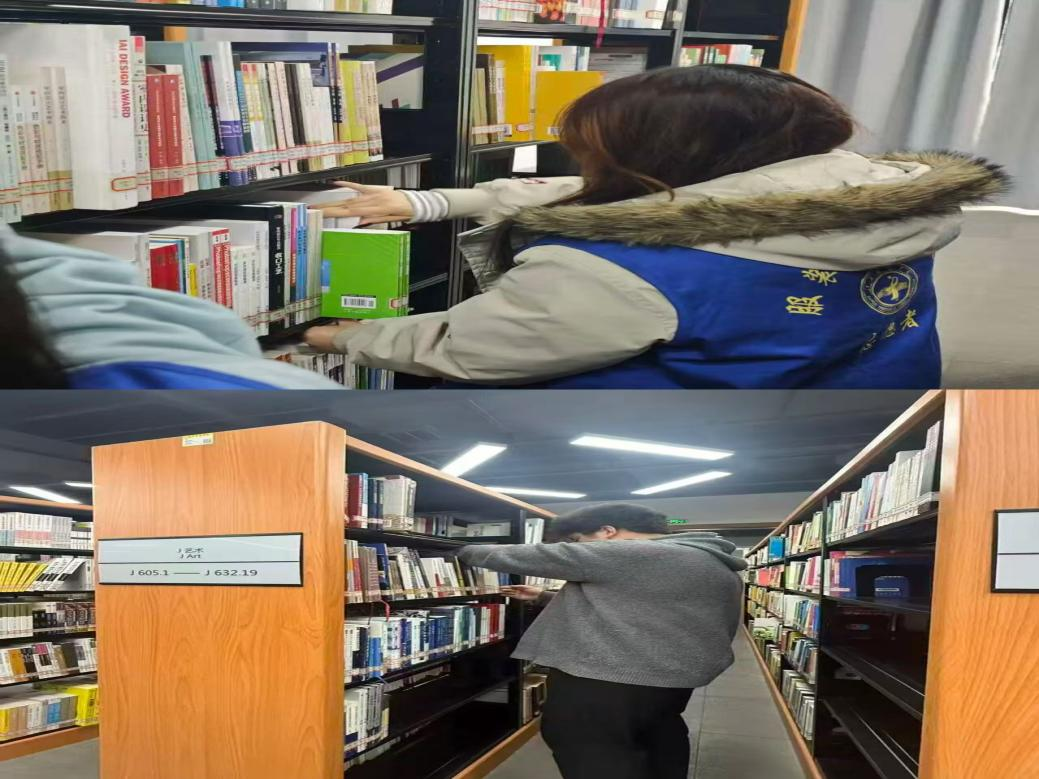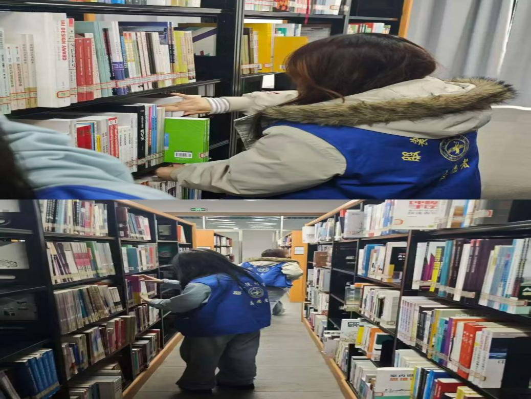 活动中,志愿者们身着统一的蓝色志愿马甲,在图书馆工作人员的指导下,分工协作、有条不紊地开展工作。大家仔细核对图书索书号,将错架、乱架的书籍逐一归位,认真擦拭书架灰尘,协助维护阅览室秩序。从艺术设计类专业书籍到通识读物,志愿者们耐心细致地完成每一项任务,用双手让书架重新整齐有序,为师生营造了更加整洁、便捷的阅读环境。