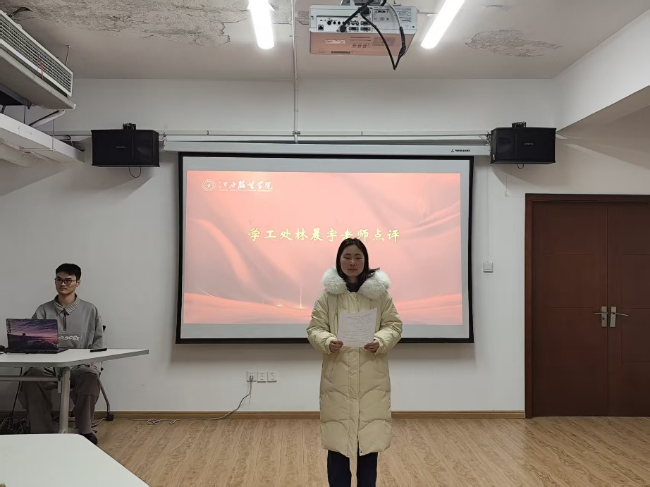学工处林晨宇老师她肯定了各位班长在班级建设中付出的努力,希望大家将本次沙龙交流收获转化为实际行动,结合本班实际创新工作方法,以优良班风带动学风,以扎实工作推动班级成长。