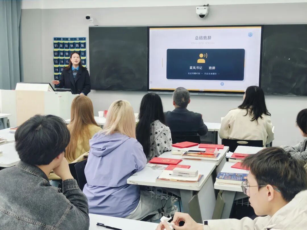 仪式在温馨庄重的氛围中拉开帷幕。辅导员徐娴首先致辞,她回顾了同学们在寒假期间坚持英语打卡、精听训练以及创意思维导图制作等方面的努力,鼓励大家把坚持变成习惯,让自律成为成长的底色。
