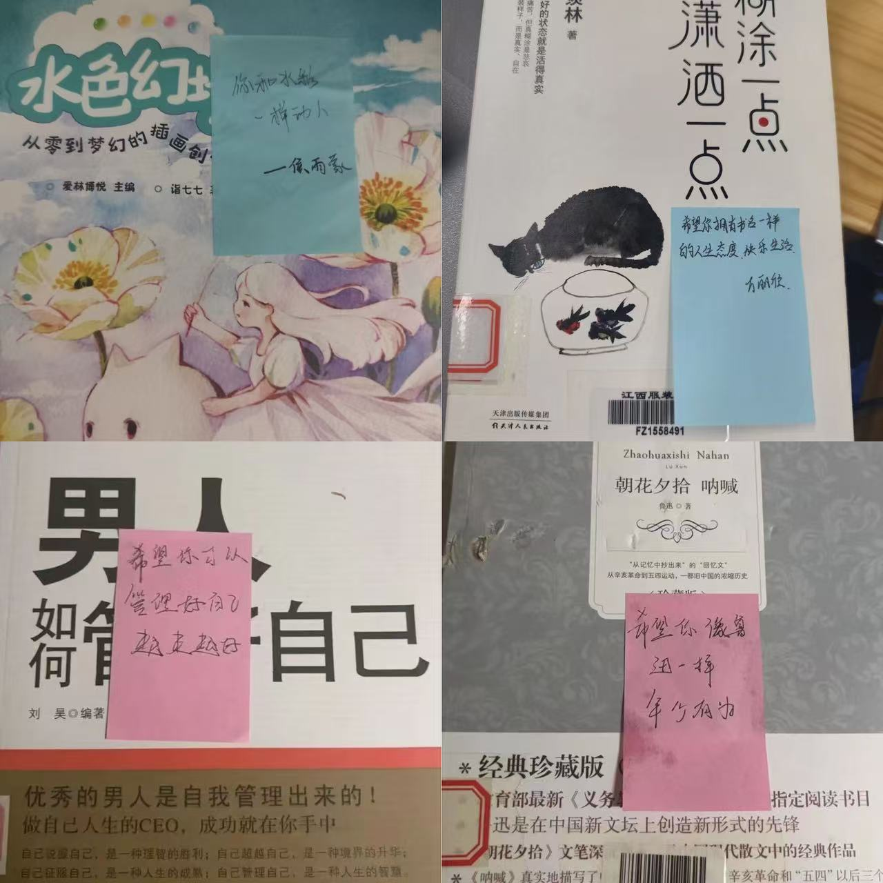 选书过程中,同学们立足伙伴兴趣与成长需求,走进图书馆甄选、翻阅私藏优选:为文学爱好者送上经典散文,为求知欲强的同学准备科普读物,为需要鼓励的伙伴挑选励志佳作。大家认真书写赠书寄语,将选书心意与温暖祝福附于扉页,让每一本书都承载着专属关怀与成长期许。