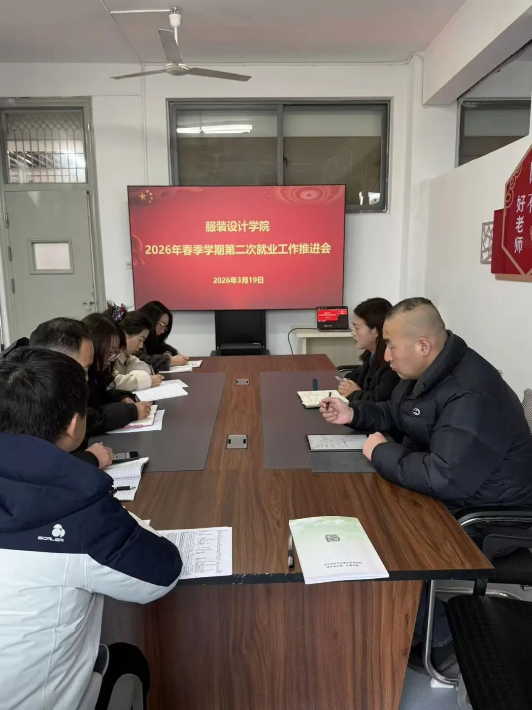 会议伊始,马忠秋首先传达上级部门及学校近期关于毕业生就业工作的最新部署要求与核心工作精神,明确春季学期后半段毕业生就业工作的目标导向、时间节点与核心任务。随后,各毕业班班主任依次汇报本班毕业生就业最新进展,全面梳理班级就业动态,详细说明已就业学生的岗位落实质量与行业分布情况,跟进考公考编、考研复试学生的备考进度与备考状态,精准摸排仍处于求职阶段、参与各类面试学生的人数规模、求职意向方向、岗位投递情况及求职过程中面临的实际困难,客观剖析班级就业推进缓慢、未达预期的深层原因,为后续精准施策提供翔实依据。