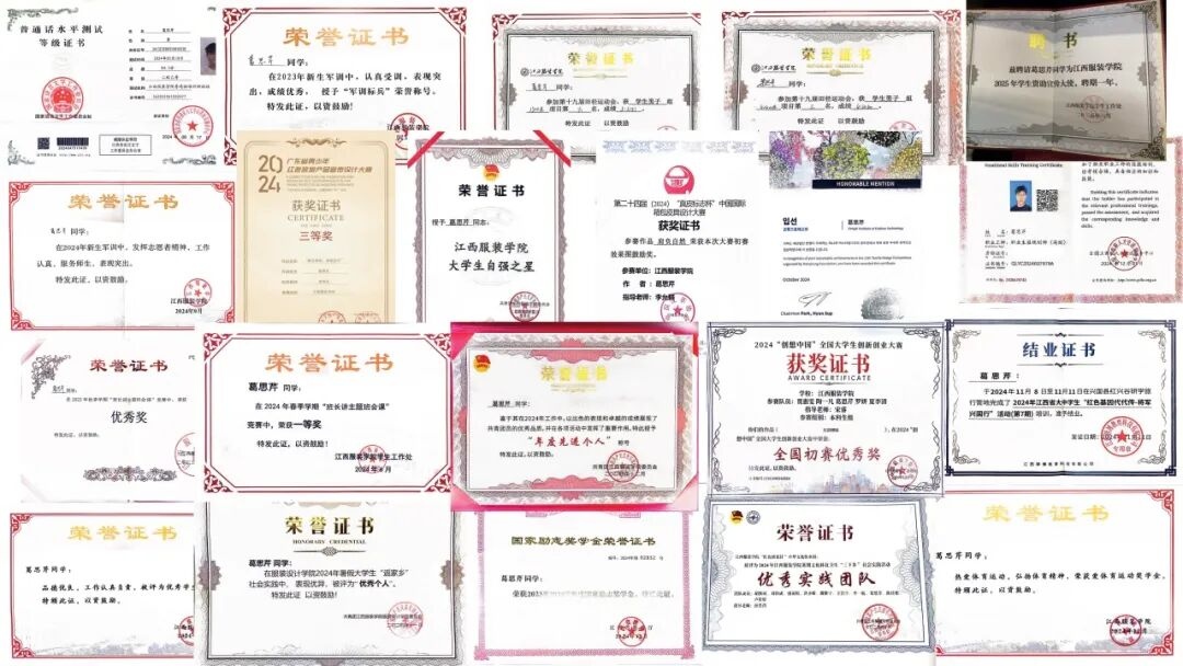 2025年1月荣获江西服装学院“赢在江服”优秀奖;