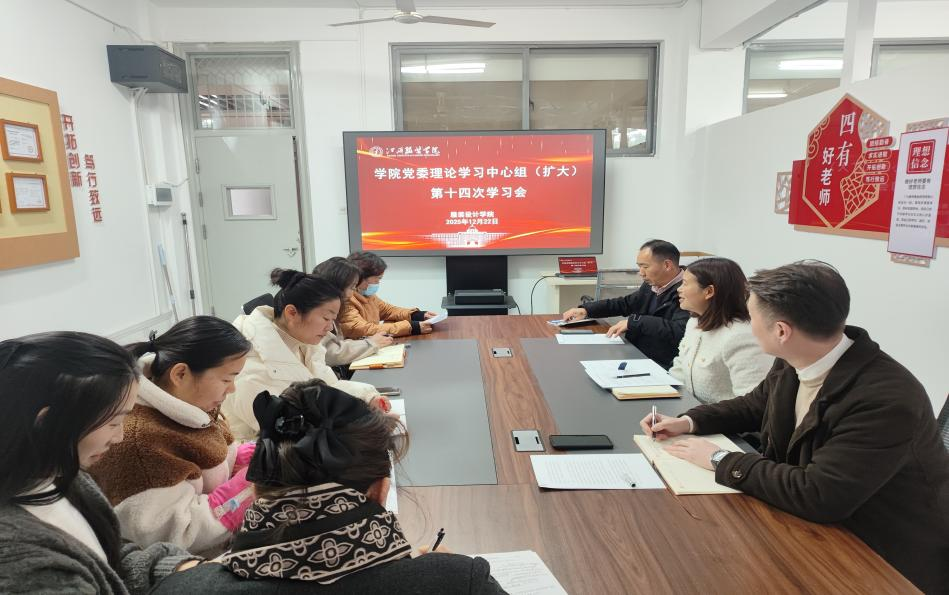 (服装设计学院通讯员:钟怡婕)为深入学习贯彻习近平新时代中国特色社会主义思想,切实筑牢思想根基、压实工作责任,2025年12月22日上午9:30,服装设计学院党委理论学习中心组(扩大)第十四次学习会议在主教楼107-2会议室召开。学院党委委员、领导班子成员及各党支部书记参加会议,会议由学院党委书记蓝岚主持。