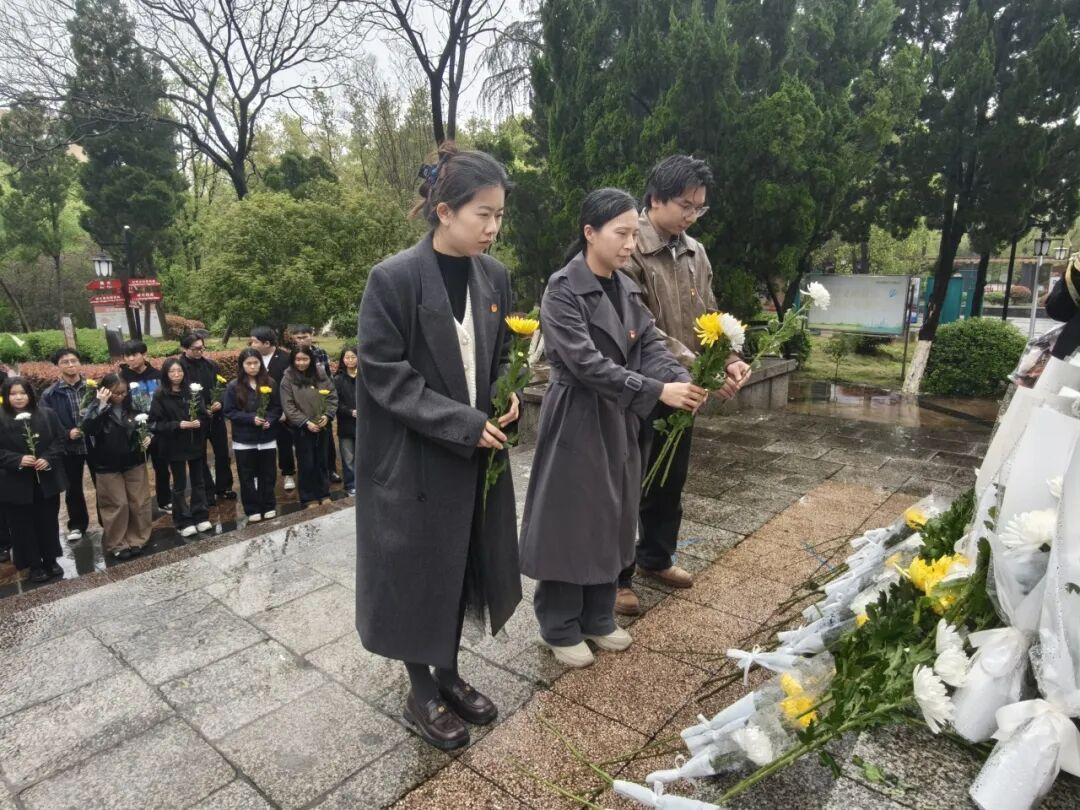 (服装设计学院通讯员:钟怡婕)清明雨寄哀思,英烈魂永铭记。在清明节来临之际,为深切缅怀革命先烈,传承红色基因,厚植青年学生的爱国情怀与责任担当,服装设计学院组织团员青年、学生党员代表,前往南昌县革命烈士纪念塔开展“缅怀先烈守初心 青春建功担使命”主题团日活动。学院分团委副书记王袭,辅导员冯秀秀、江聪带队参与活动。