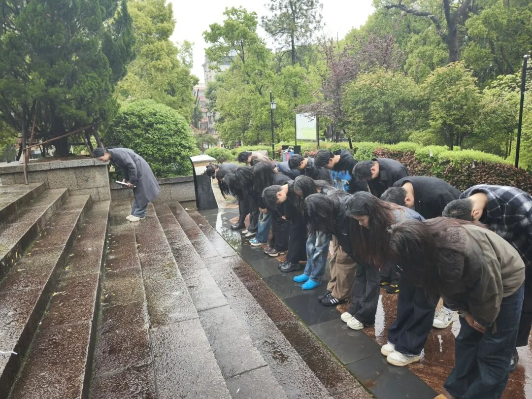 活动最后,全体团员面向团旗庄严宣誓,重温入团誓词,铿锵有力的誓言回荡在陵园上空,彰显着新时代江服学子传承红色基因、勇担青春使命的坚定决心。师生们依次绕行纪念碑,瞻仰烈士事迹,在追思中感悟初心,在传承中汲取力量。