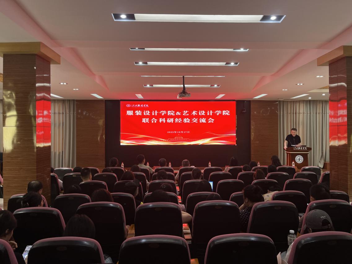 (服装设计学院张丰烁讯)为进一步整合学术资源、共享科研经验,促进教师学术交流与经验互鉴、推动设计类学科科研水平协同提升。2025年10月17日下午2:00,服装设计学院和艺术设计学院在行政楼一楼报告厅联合召开科研经验交流会。服装设计学院联系校领导,科技产业处处长,服装设计学院、艺术设计学院党政领导班子及两个学院教师参加会议,会议由服装设计学院院长张宁主持。