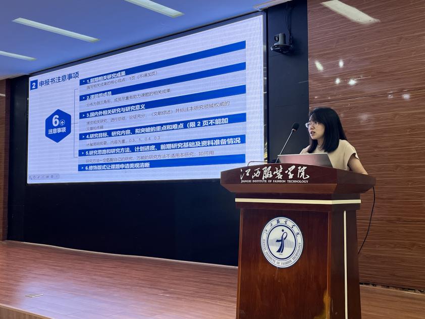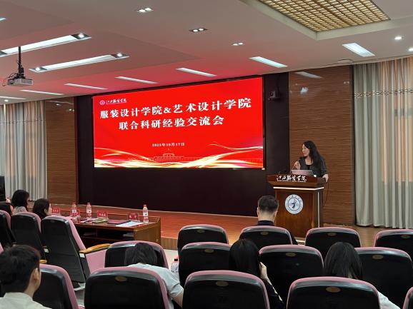 随后,服装设计学院和艺术设计学院的两位副院长分别就本院科研工作进行了汇报,并重点围绕如何夯实科研基础、优化资源配置、激发团队潜能等方面,提出了清晰的发展规划,展现了两个学院致力于提升科研实力的决心与清晰路径。