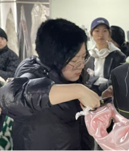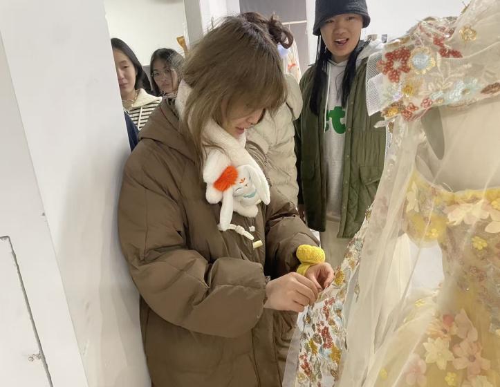 项目依托北京肇达·张服装设计院的行业资源优势,创新构建“品牌标准+工艺流程+市场需求”三位一体教学体系,为学生搭建了从课堂理论到市场实战的全链条培养平台。在真实项目任务驱动下,同学们将课堂所学的设计语言与工艺技法灵活转化,每一处立体裁剪的流畅曲线、每一片面料重构的独特肌理、每一针手工刺绣的细腻纹路,都凝聚着同学们从灵感迸发、图纸绘制到实物呈现的探索心血,生动诠释了学院“产教融合、知行合一”的育人特色。